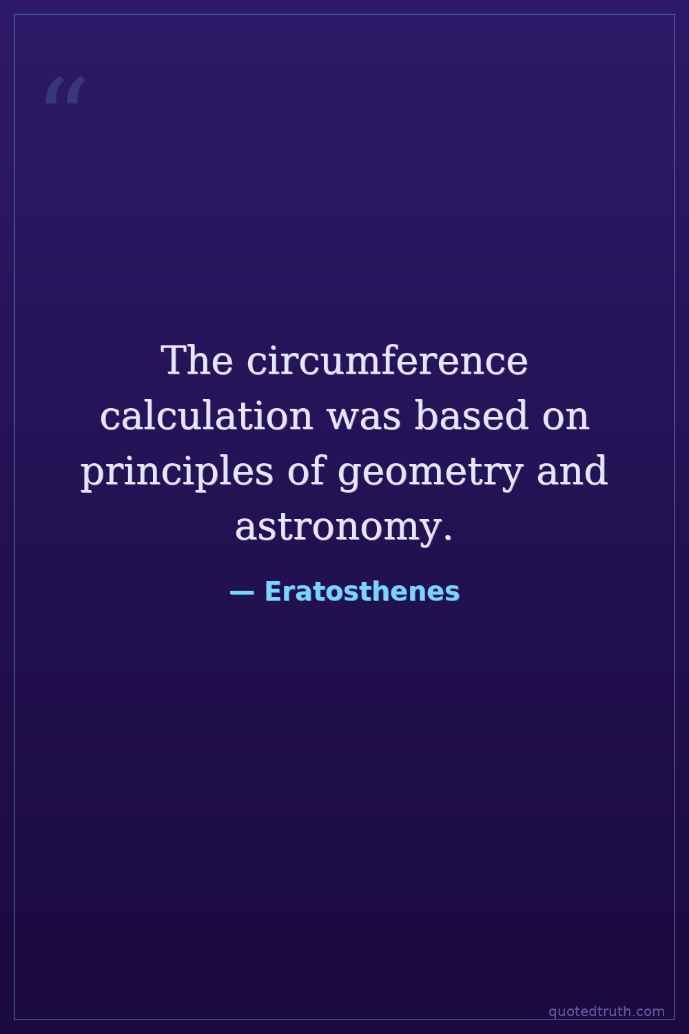 The circumference calculation was based on principles of geometry and astronomy.