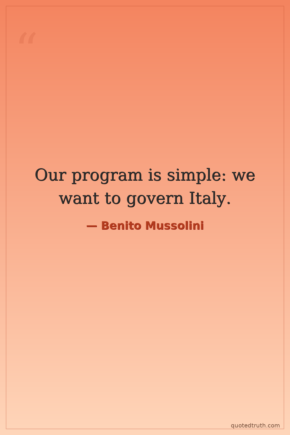 Shocking"My objective is to make Italy greater, stronger, more prosperous, more glorious."