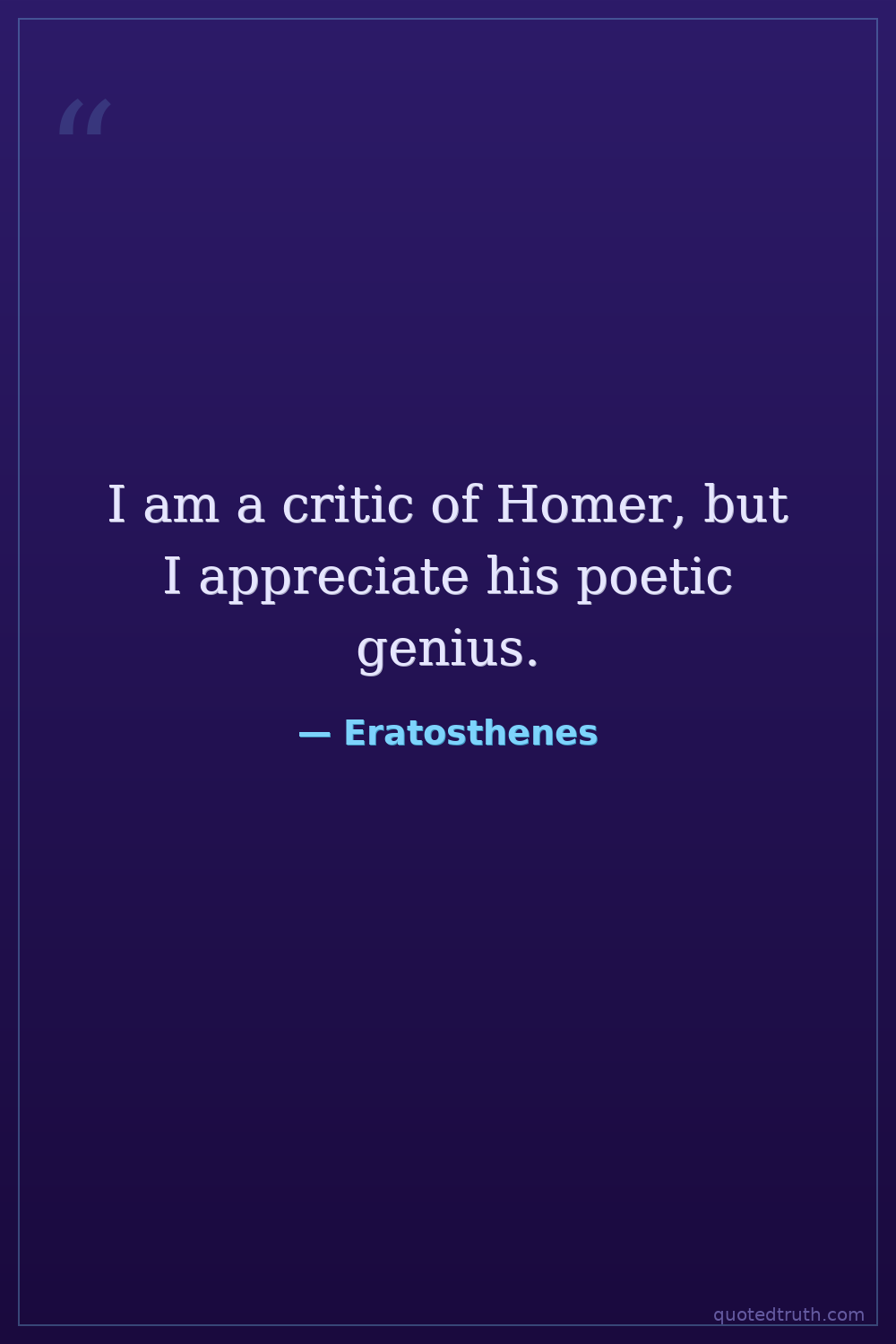I am a critic of Homer, but I appreciate his poetic genius.