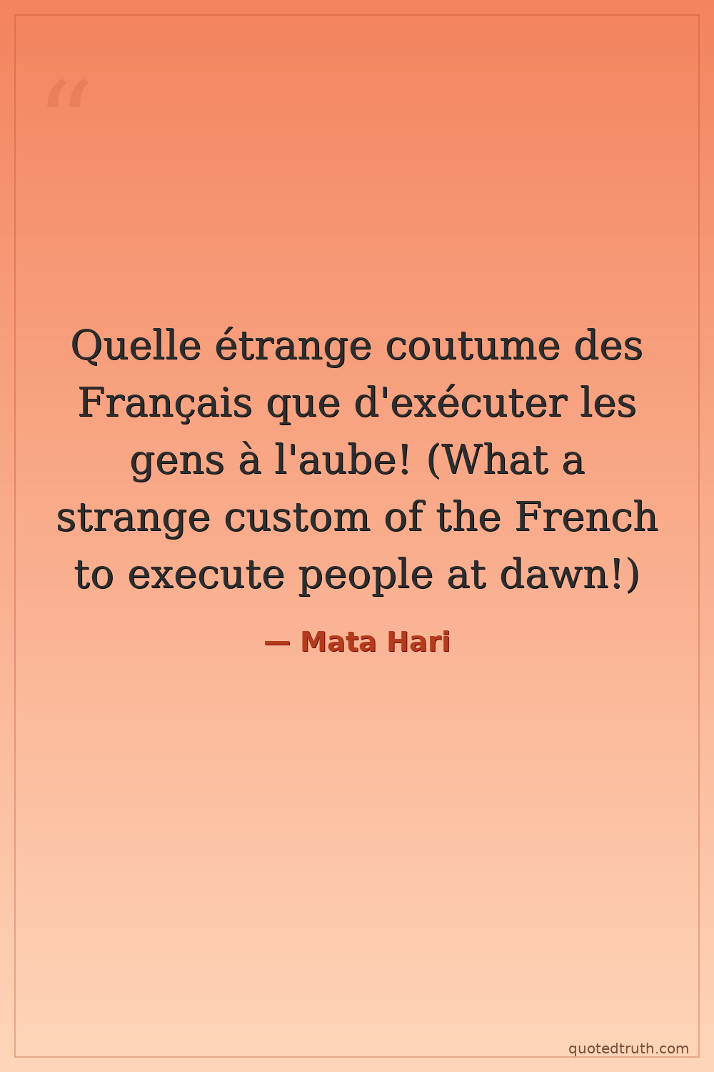 Quelle étrange coutume des Français que d'exécuter les gens à l'aube! (What a strange custom of the French to execute people at dawn!)