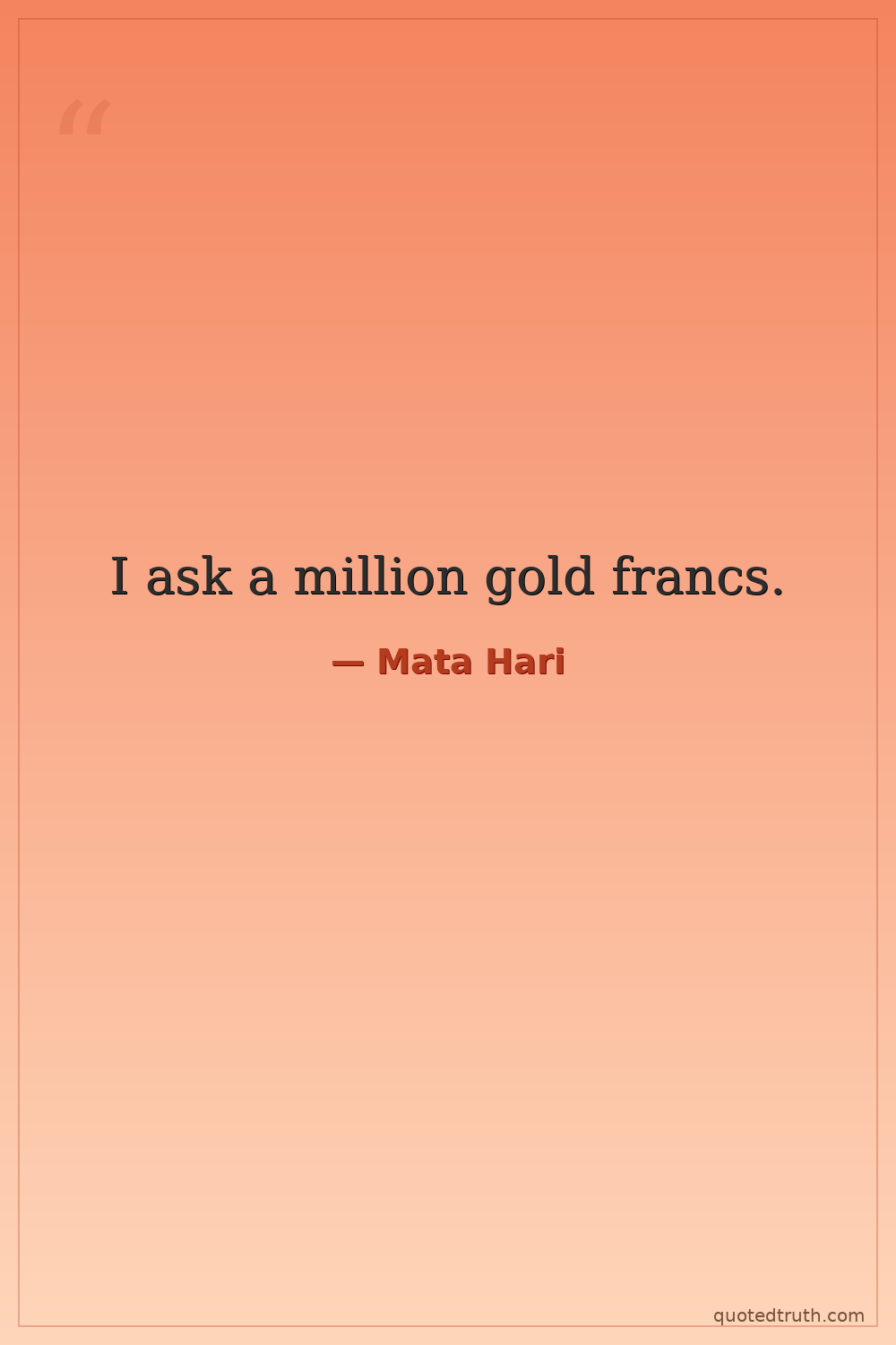 Her demand to Captain Georges Ladoux when he tried to recruit her as a spy for France.