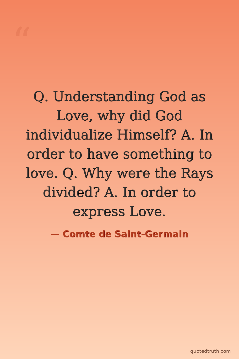 Q. Understanding God as Love, why did God individualize Himself? A. In order to have something to love. Q. Why were the Rays divided? A. In order to express Love.