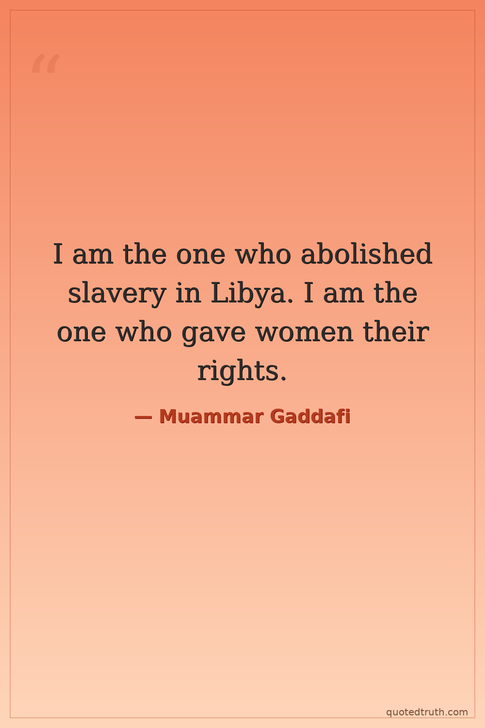 I am the one who abolished slavery in Libya. I am the one who gave women their rights.