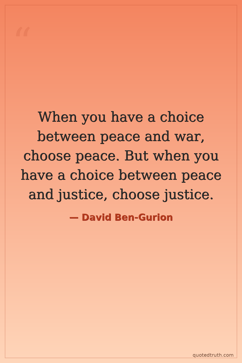 When you have a choice between peace and war, choose peace. But when you have a choice between peace and justice, choose justice.