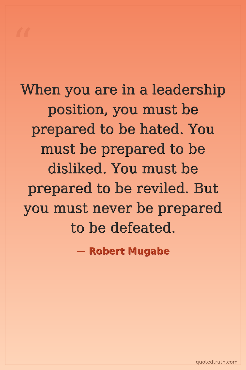 When you are in a leadership position, you must be prepared to be hated. You must be prepared to be disliked. You must be prepared to be reviled. But you must never be prepared to be defeated.