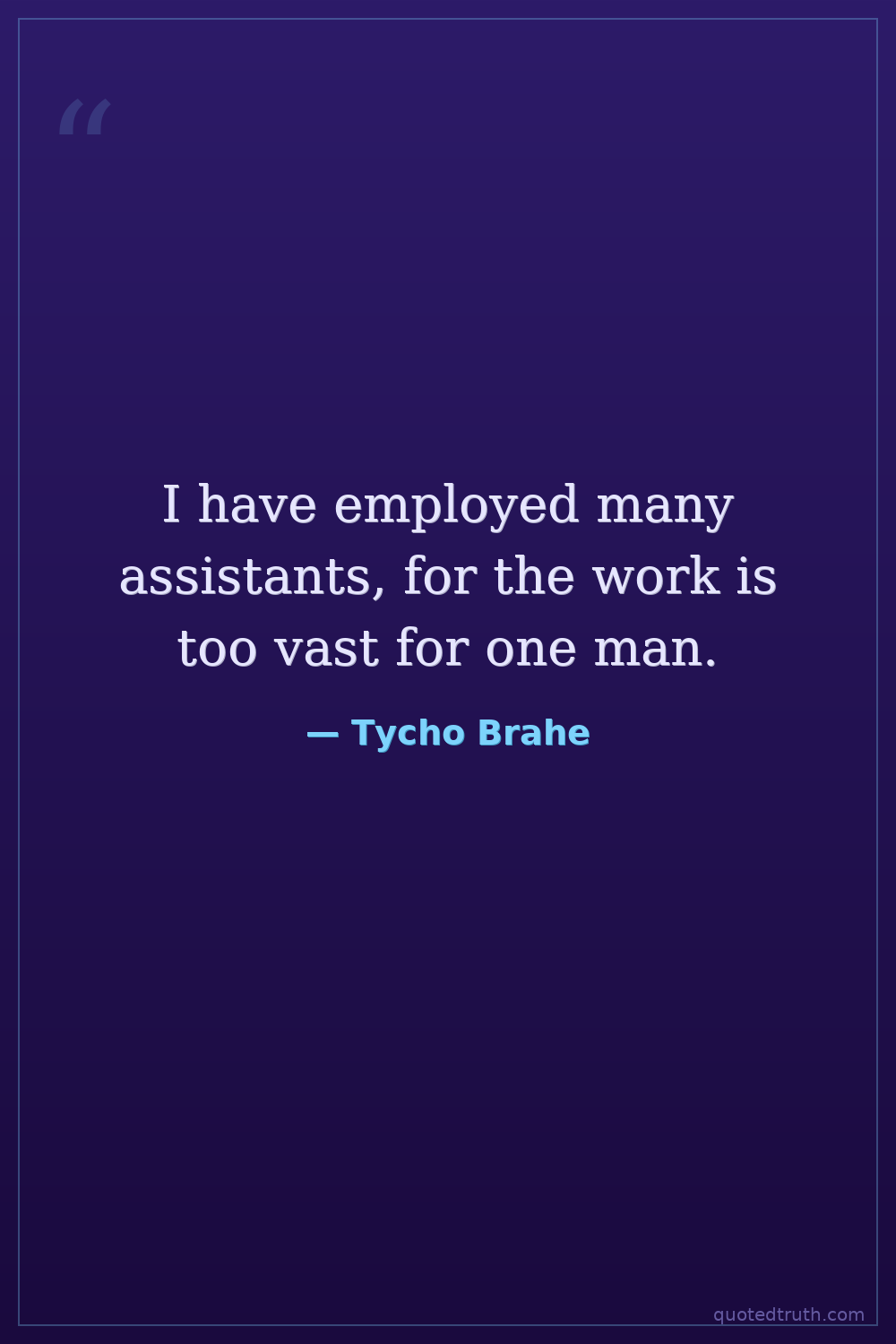 I have employed many assistants, for the work is too vast for one man.
