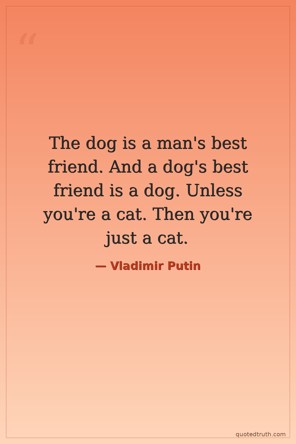 The dog is a man's best friend. And a dog's best friend is a dog. Unless you're a cat. Then you're just a cat.