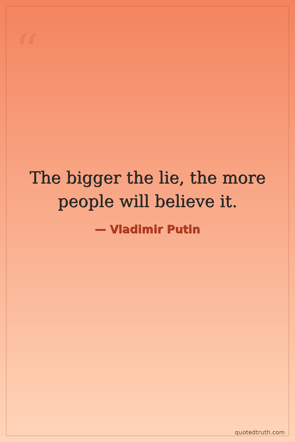 Attributed, but specific source hard to pinpoint, likely a paraphrase of a quote by Joseph Goebbels, which Putin has been accused of echoing.