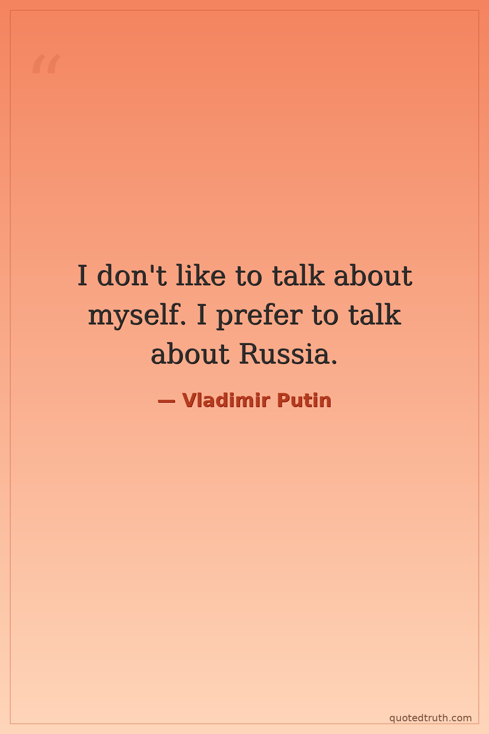 I don't like to talk about myself. I prefer to talk about Russia.