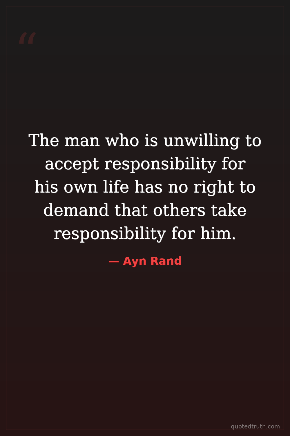 The man who is unwilling to accept responsibility for his own life has no right to demand that others take responsibility for him.