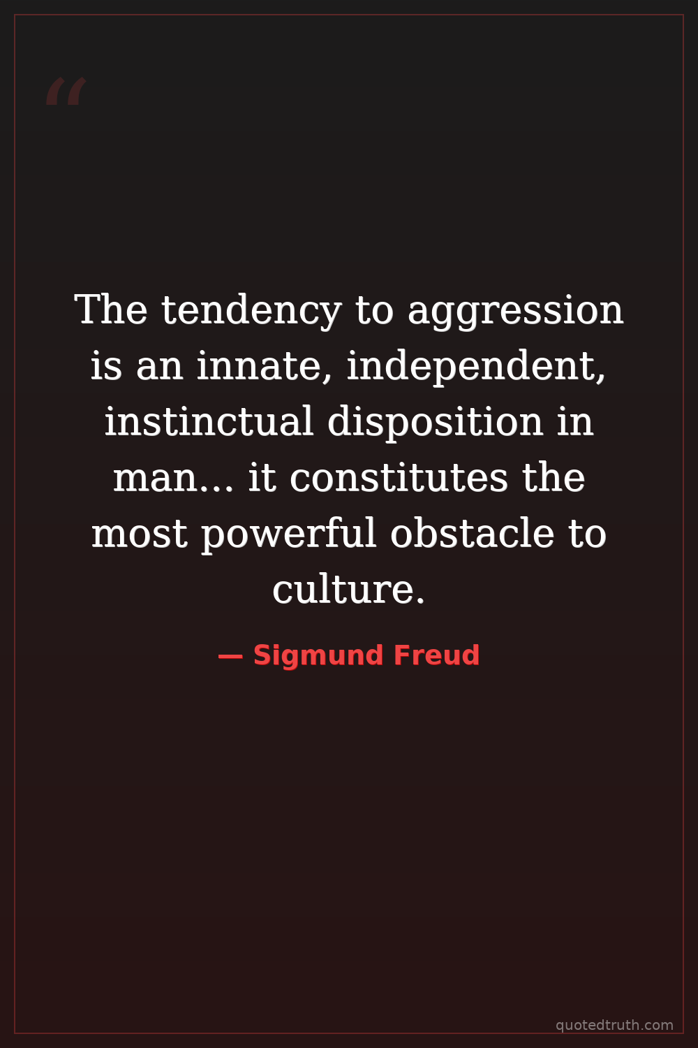 The tendency to aggression is an innate, independent, instinctual disposition in man... it constitutes the most powerful obstacle to culture.