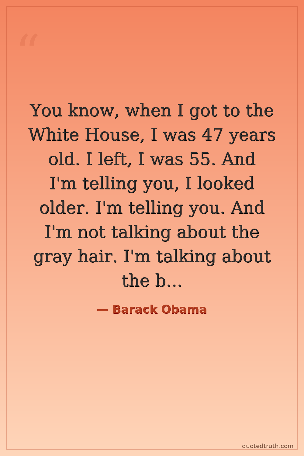 You know, when I got to the White House, I was 47 years old. I left, I was 55. And I'm telling you, I looked older. I'm telling you. And I'm not talking about the gray hair. I'm talking about the bags under my eyes, the smile lines. I'm telling you, it's a tough job.