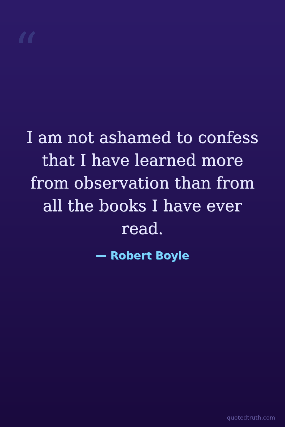 I am not ashamed to confess that I have learned more from observation than from all the books I have ever read.