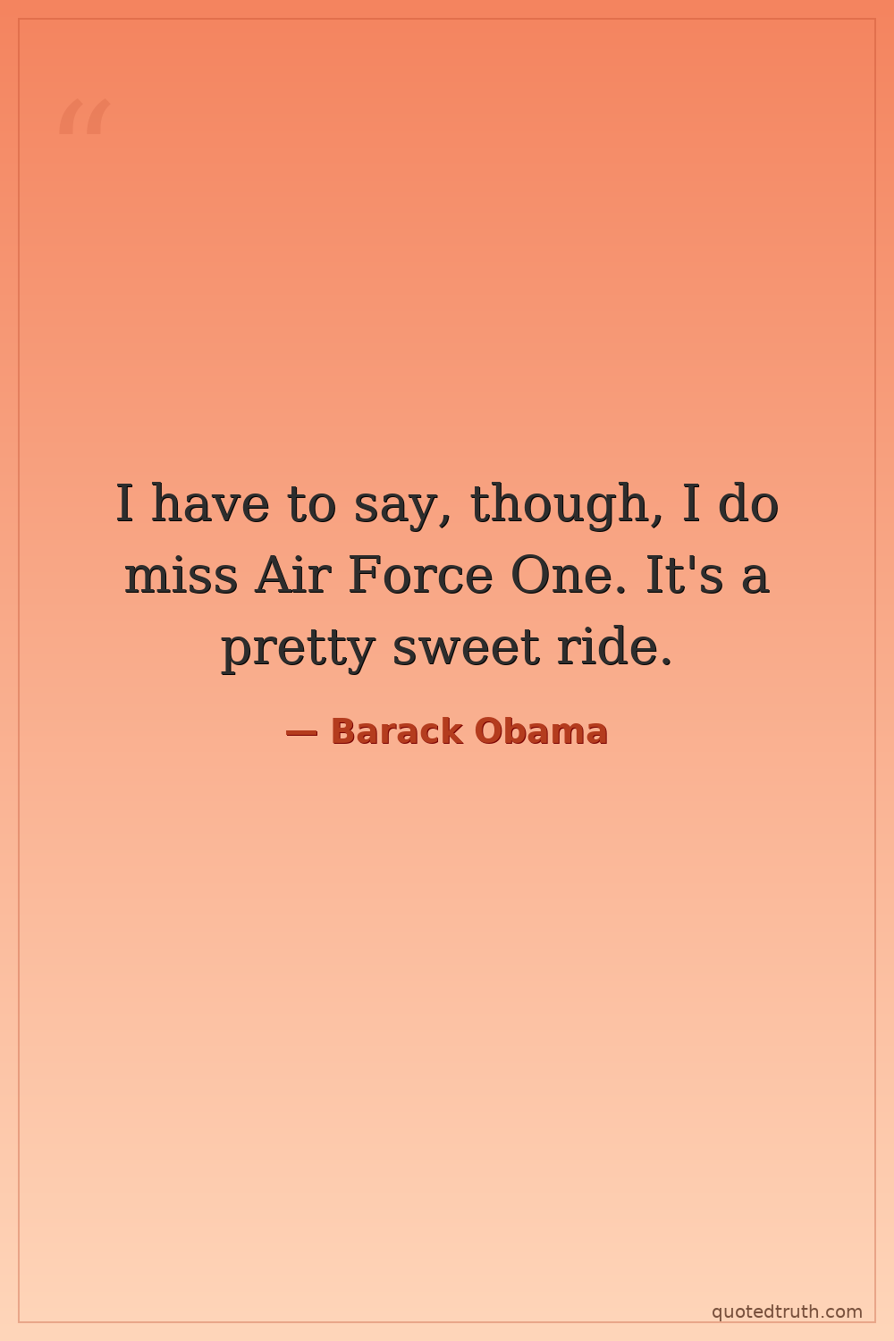 I have to say, though, I do miss Air Force One. It's a pretty sweet ride.