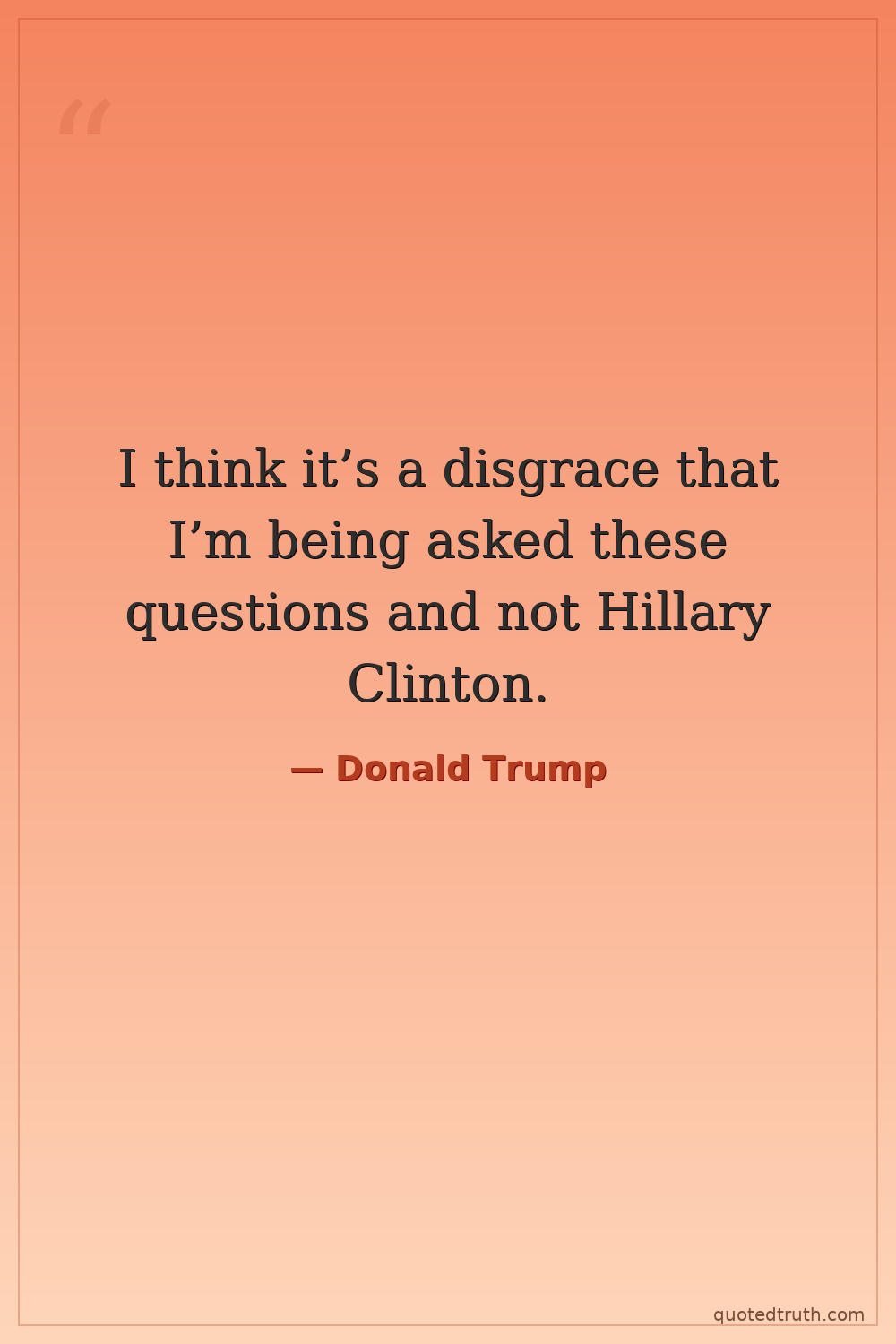 I think it’s a disgrace that I’m being asked these questions and not Hillary Clinton.