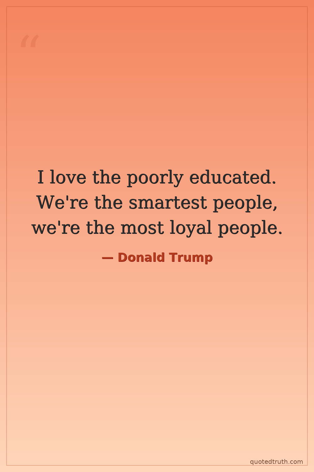 I love the poorly educated. We're the smartest people, we're the most loyal people.