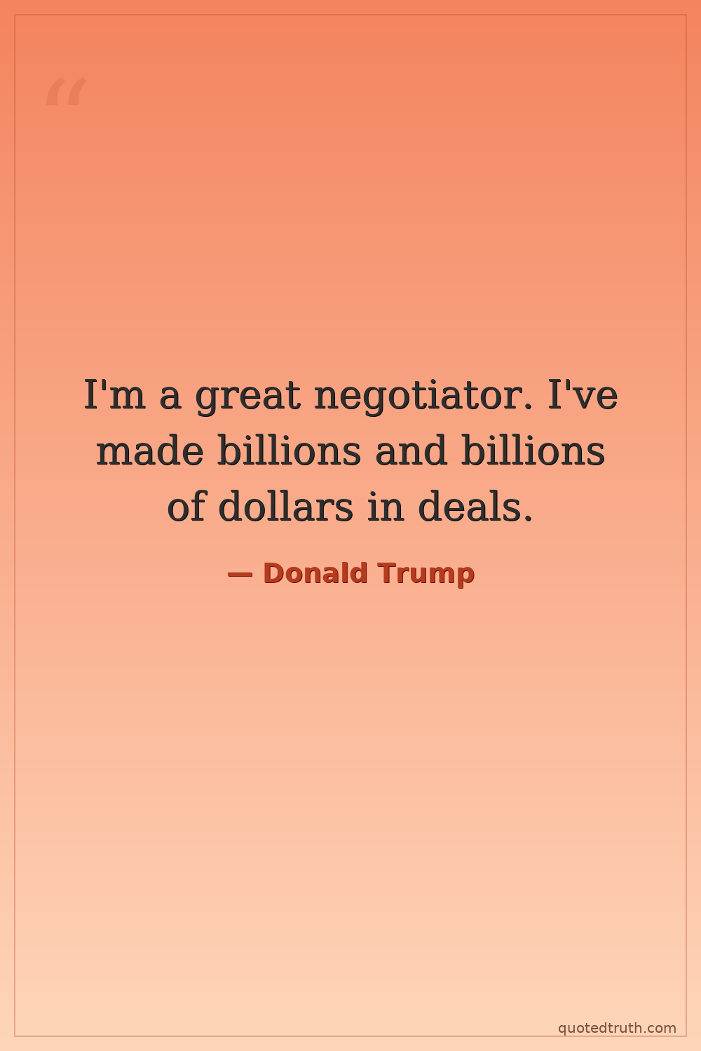 I'm a great negotiator. I've made billions and billions of dollars in deals.