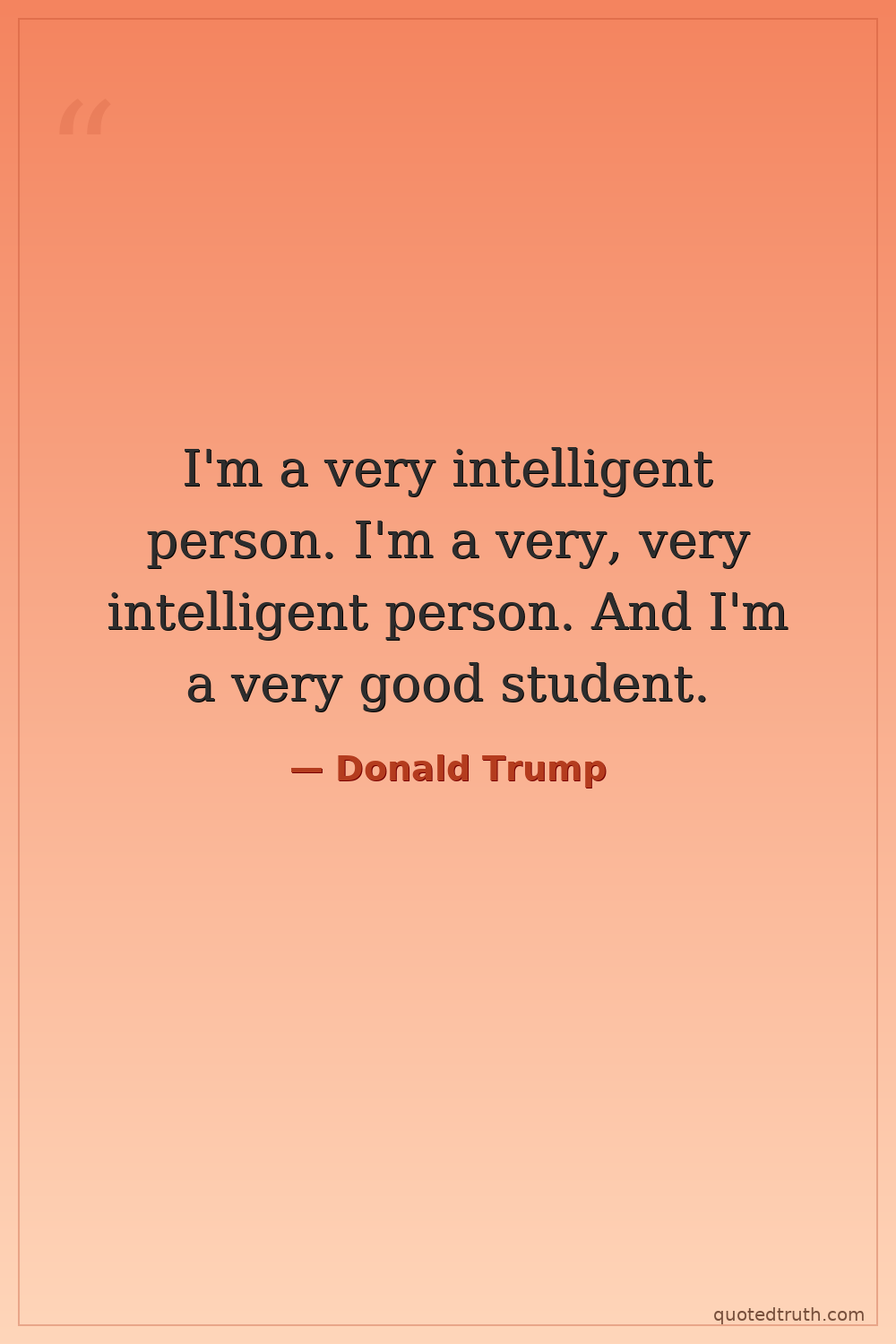 I'm a very intelligent person. I'm a very, very intelligent person. And I'm a very good student.