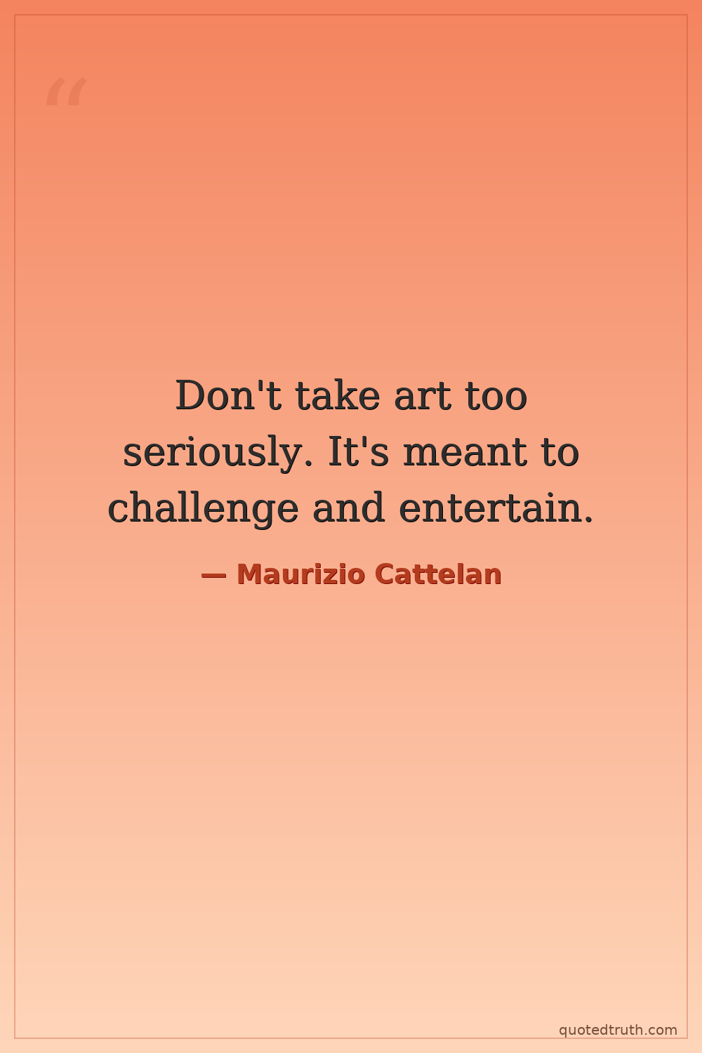 Don't take art too seriously. It's meant to challenge and entertain.