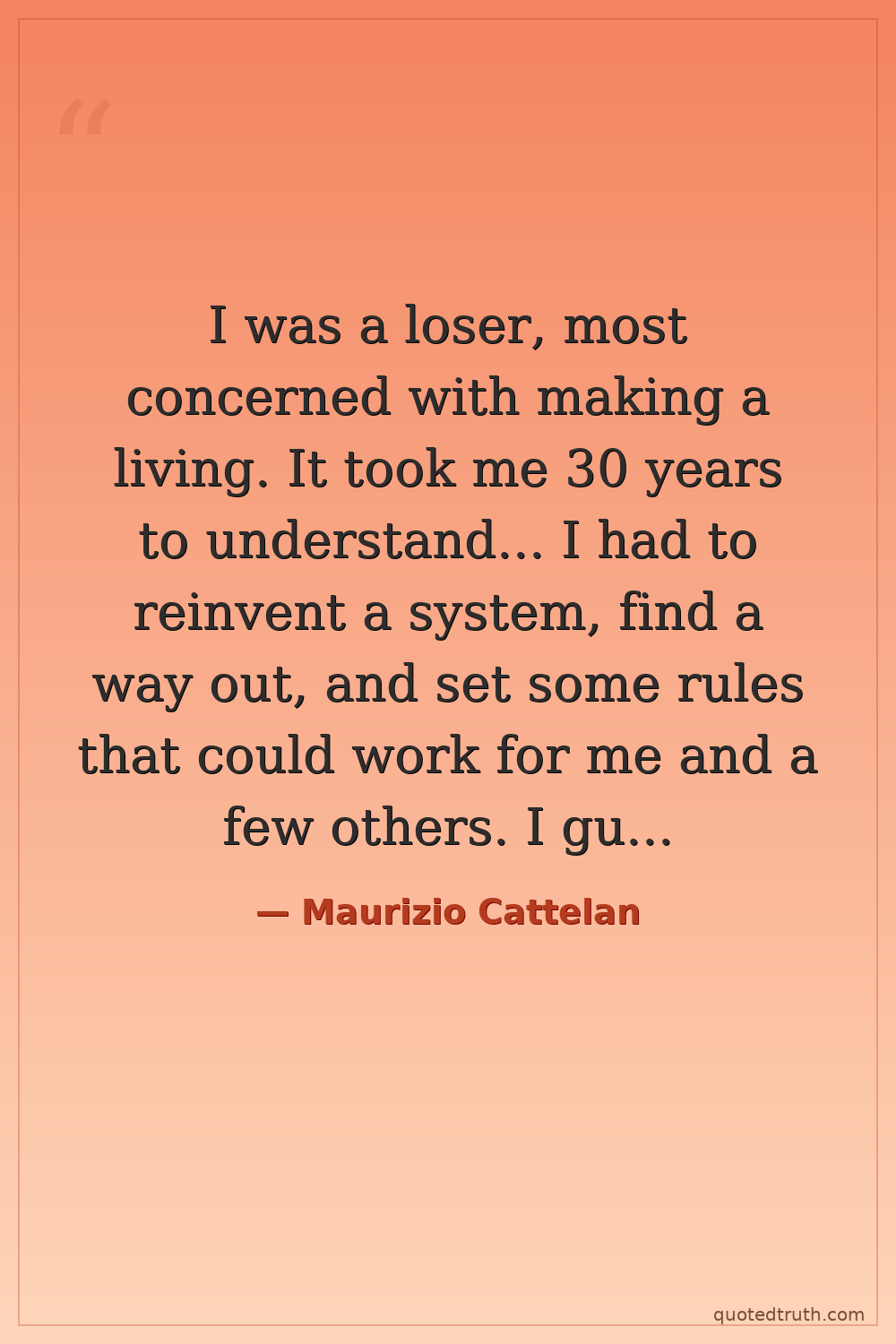 I was a loser, most concerned with making a living. It took me 30 years to understand... I had to reinvent a system, find a way out, and set some rules that could work for me and a few others. I guess in the end that's what we all are trying to do.