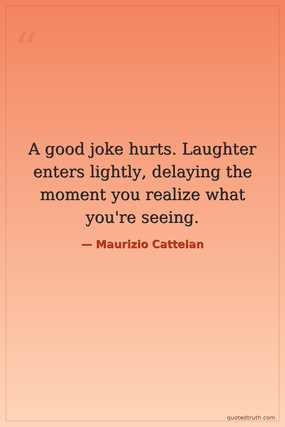 A good joke hurts. Laughter enters lightly, delaying the moment you realize what you're seeing.