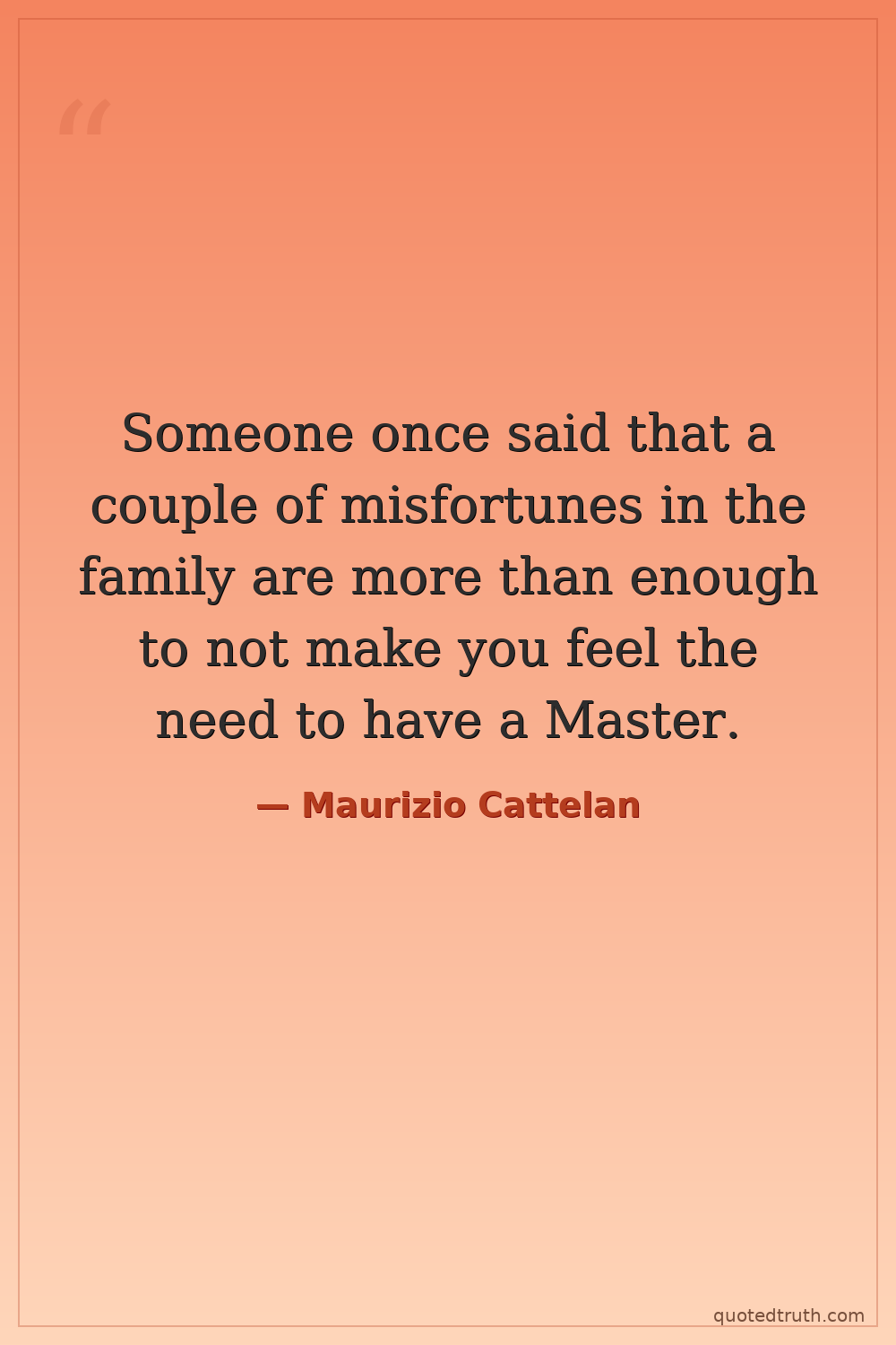 Someone once said that a couple of misfortunes in the family are more than enough to not make you feel the need to have a Master.