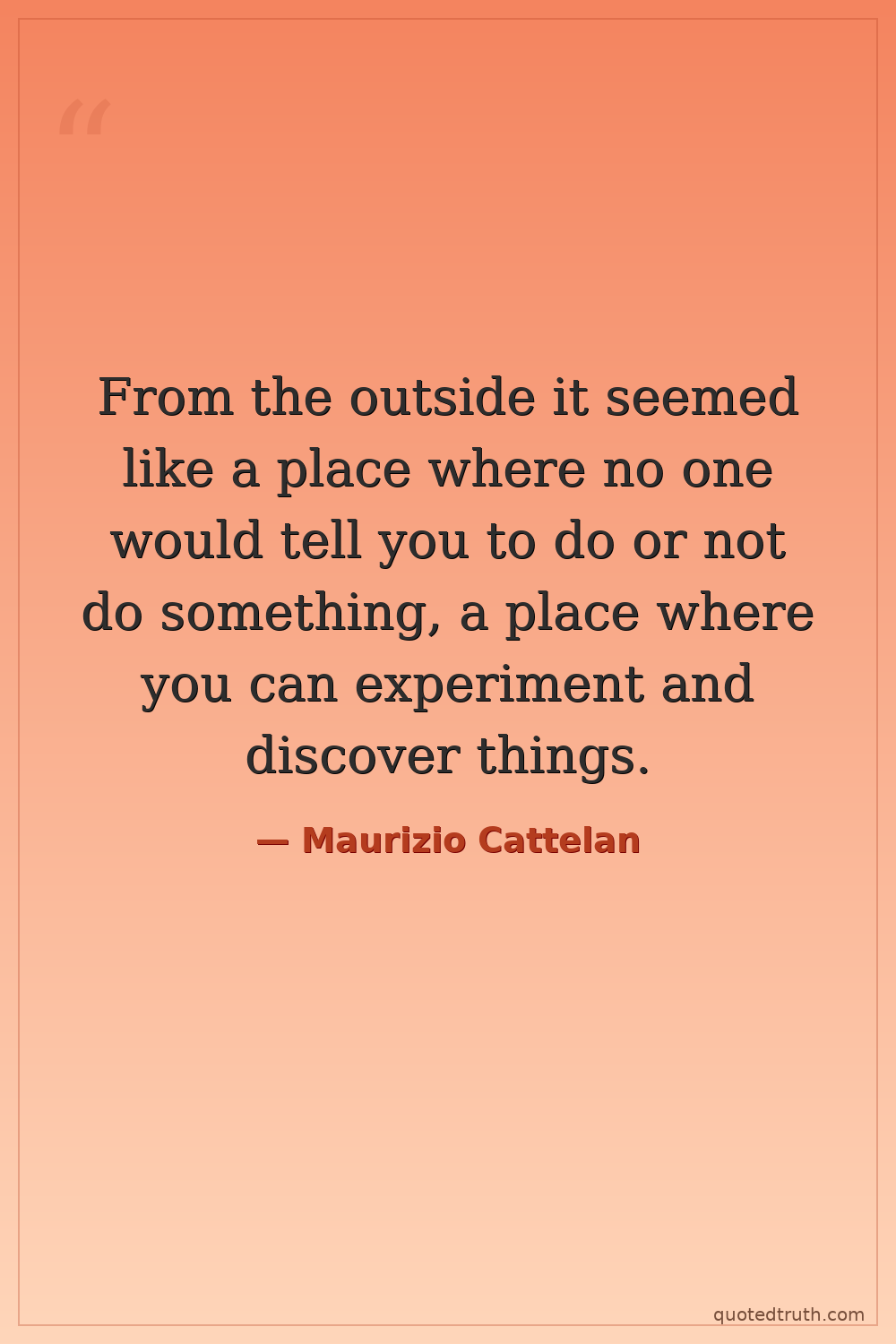From the outside it seemed like a place where no one would tell you to do or not do something, a place where you can experiment and discover things.