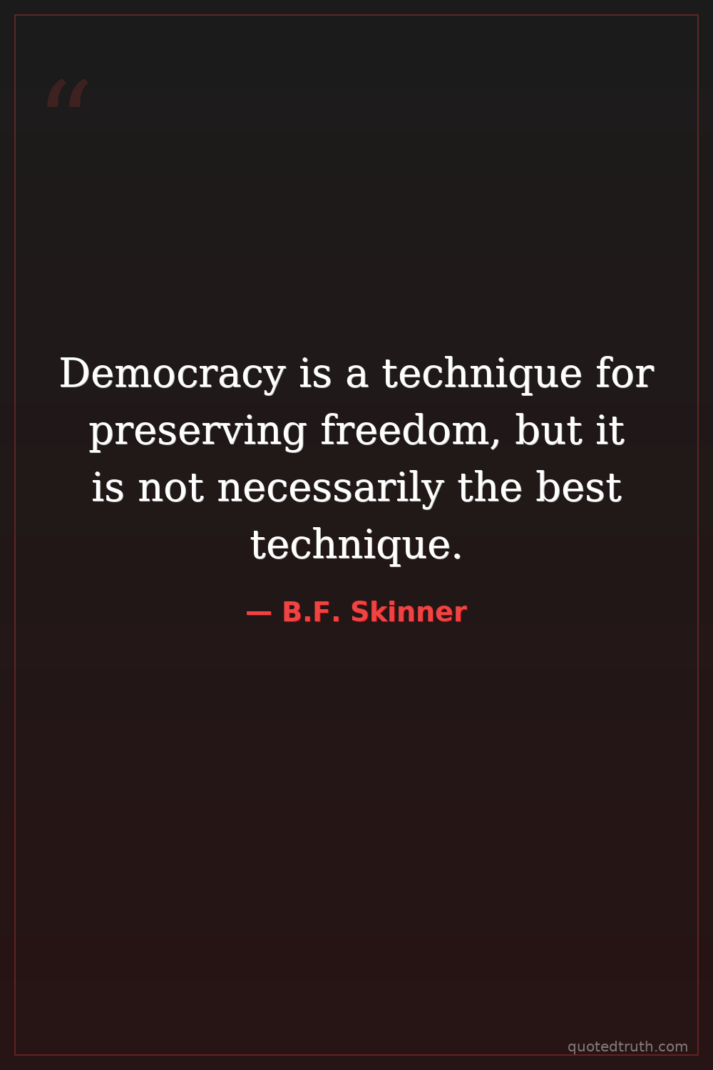 Democracy is a technique for preserving freedom, but it is not necessarily the best technique.