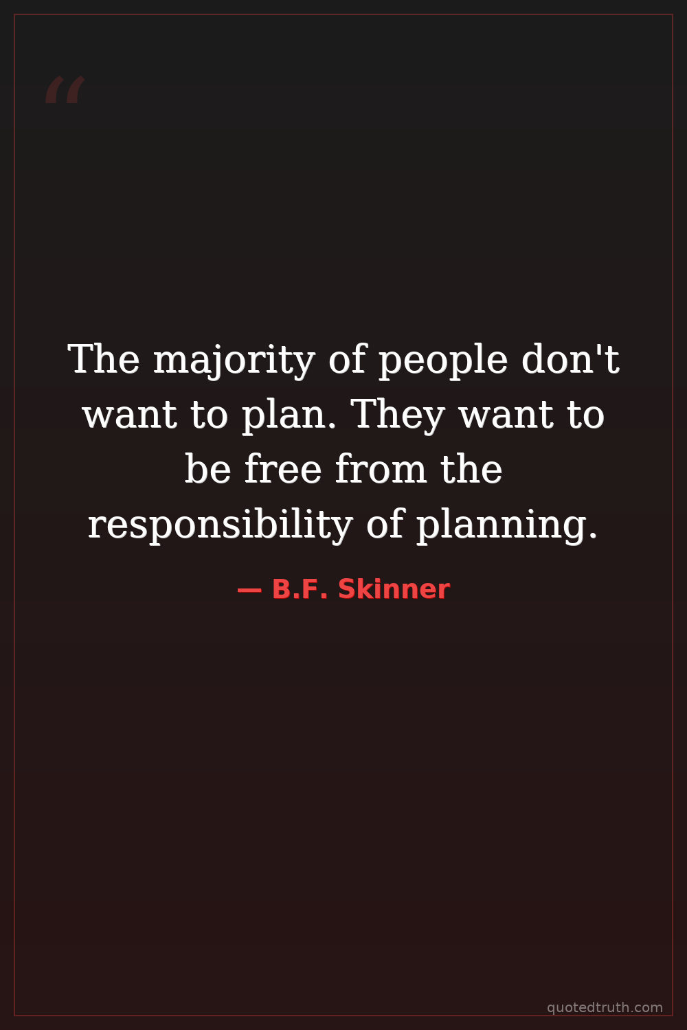 The majority of people don't want to plan. They want to be free from the responsibility of planning.
