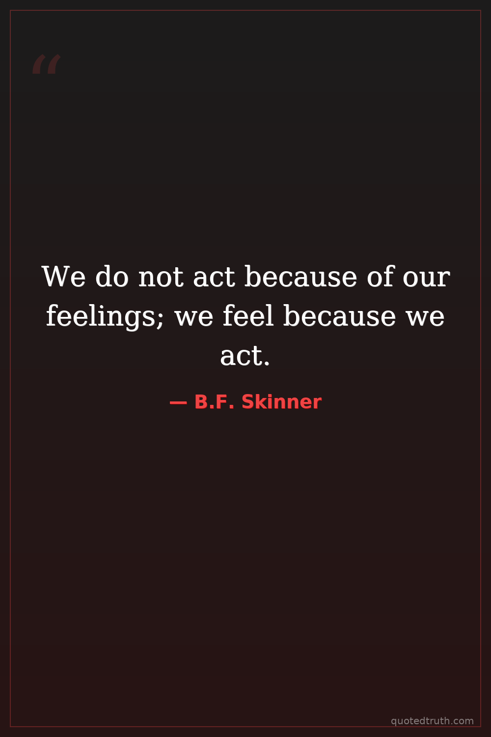 We do not act because of our feelings; we feel because we act.
