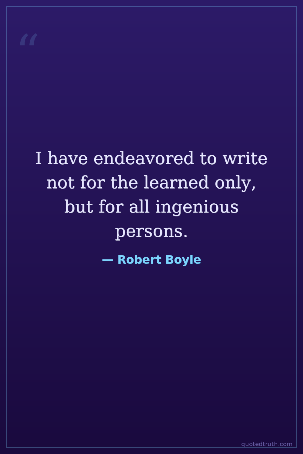 I have endeavored to write not for the learned only, but for all ingenious persons.