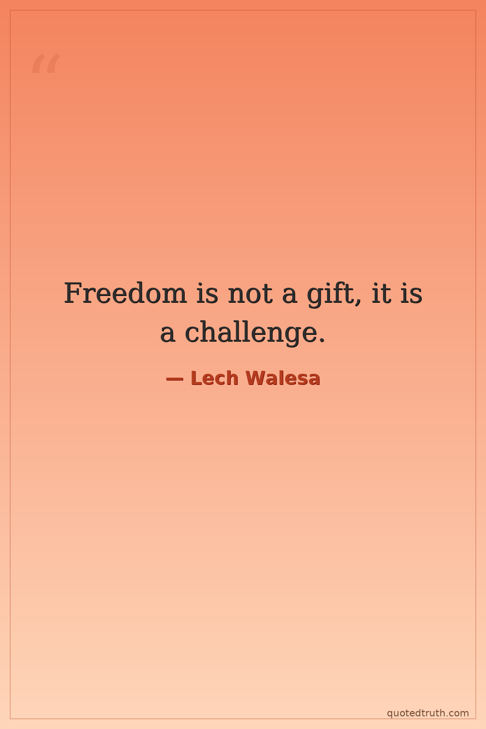 Freedom is not a gift, it is a challenge.