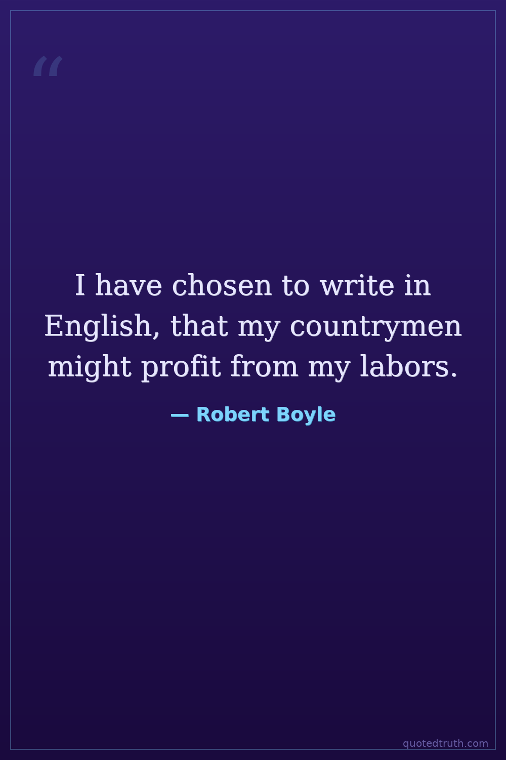 I have chosen to write in English, that my countrymen might profit from my labors.