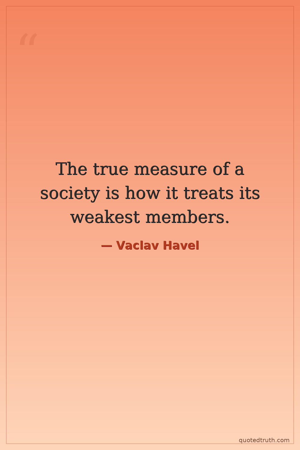 The true measure of a society is how it treats its weakest members.