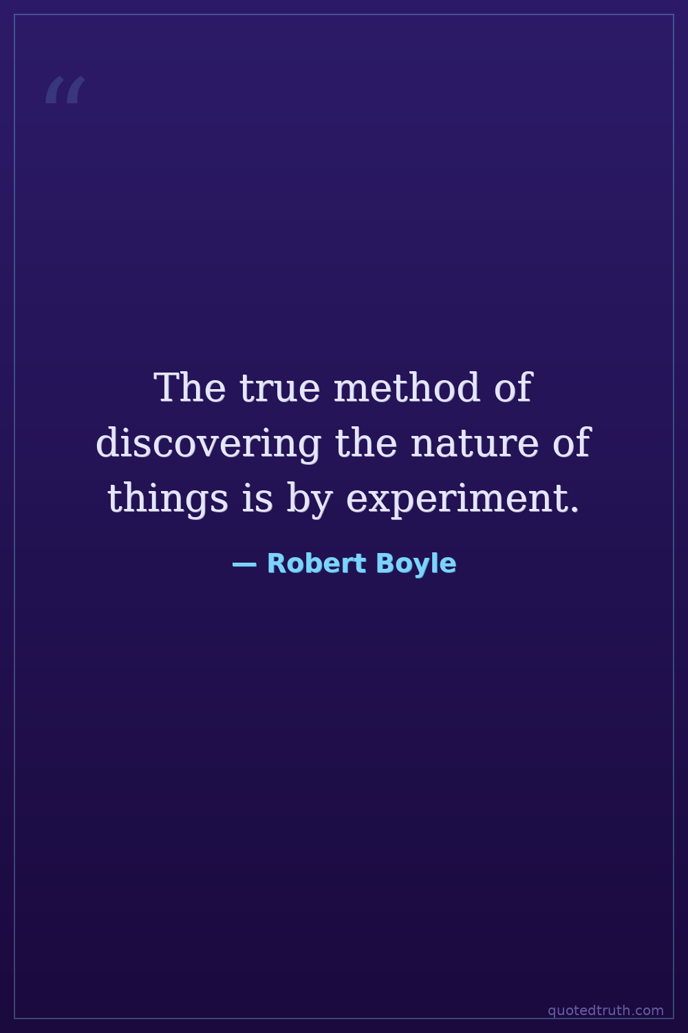 The true method of discovering the nature of things is by experiment.