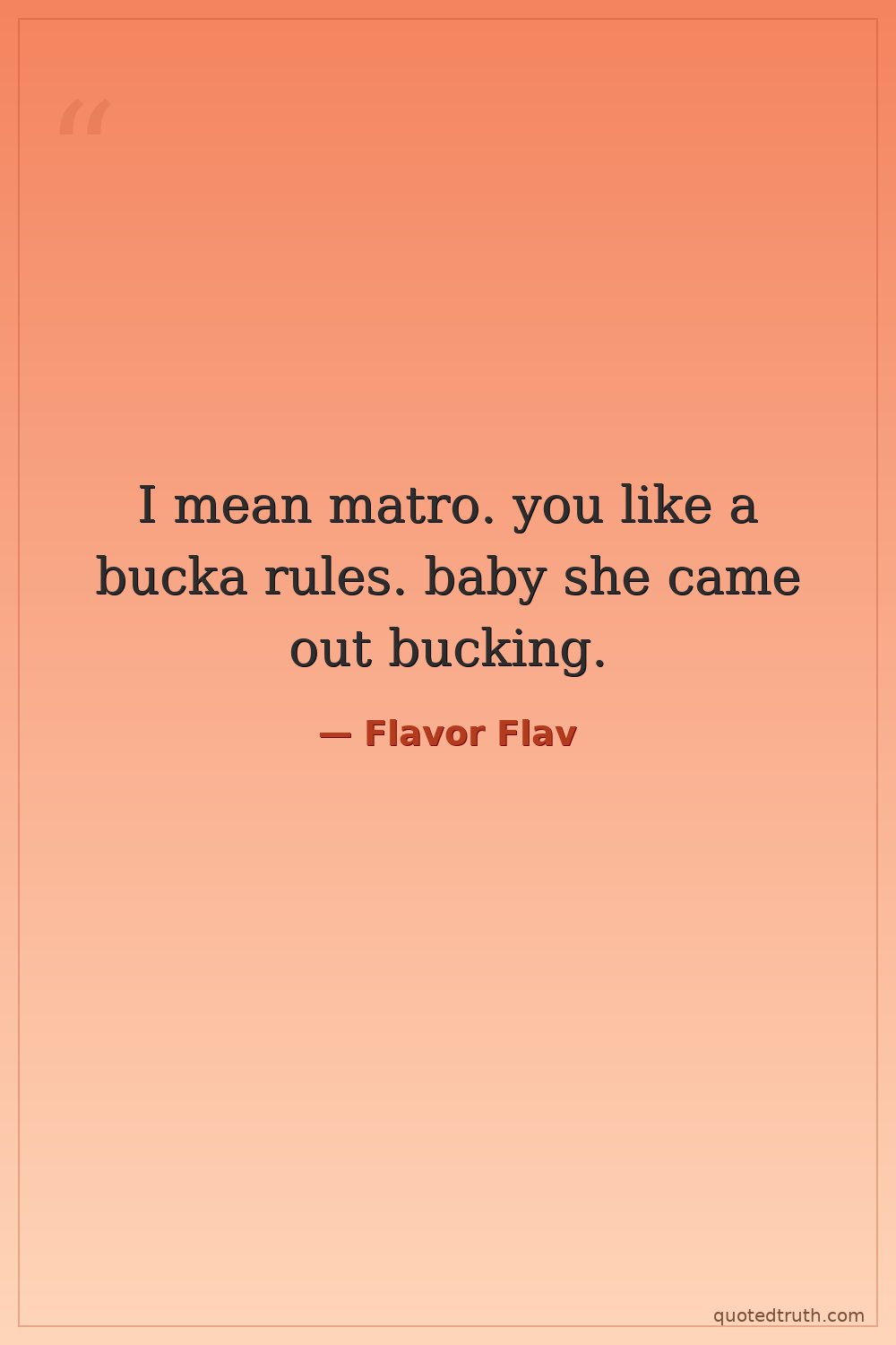 I mean matro. you like a bucka rules. baby she came out bucking.