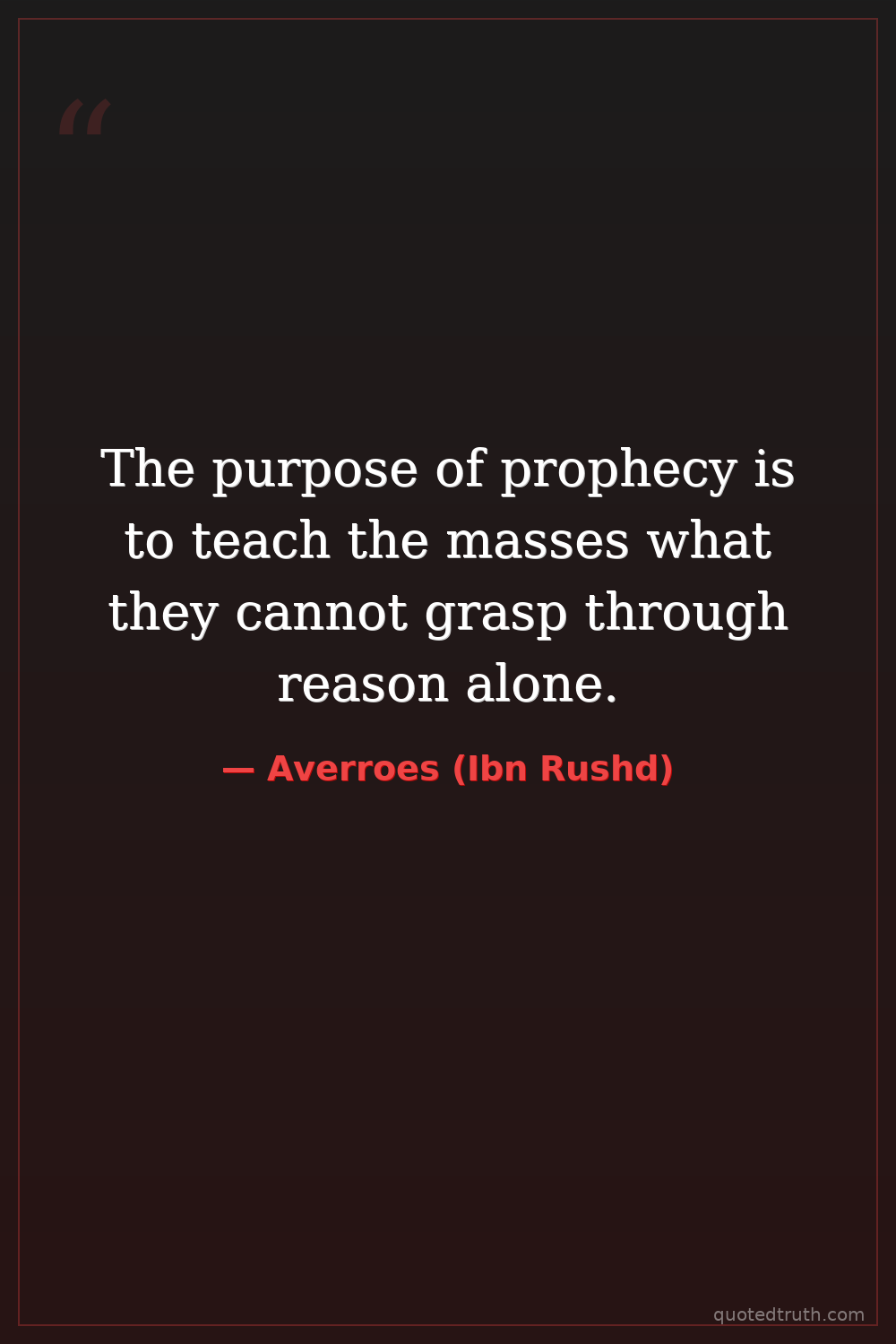 The purpose of prophecy is to teach the masses what they cannot grasp through reason alone.