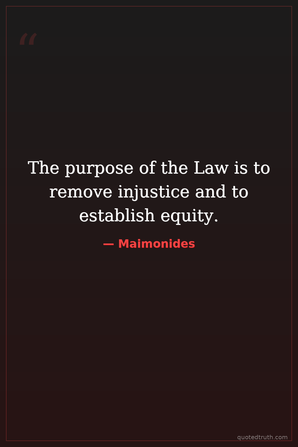 The purpose of the Law is to remove injustice and to establish equity.