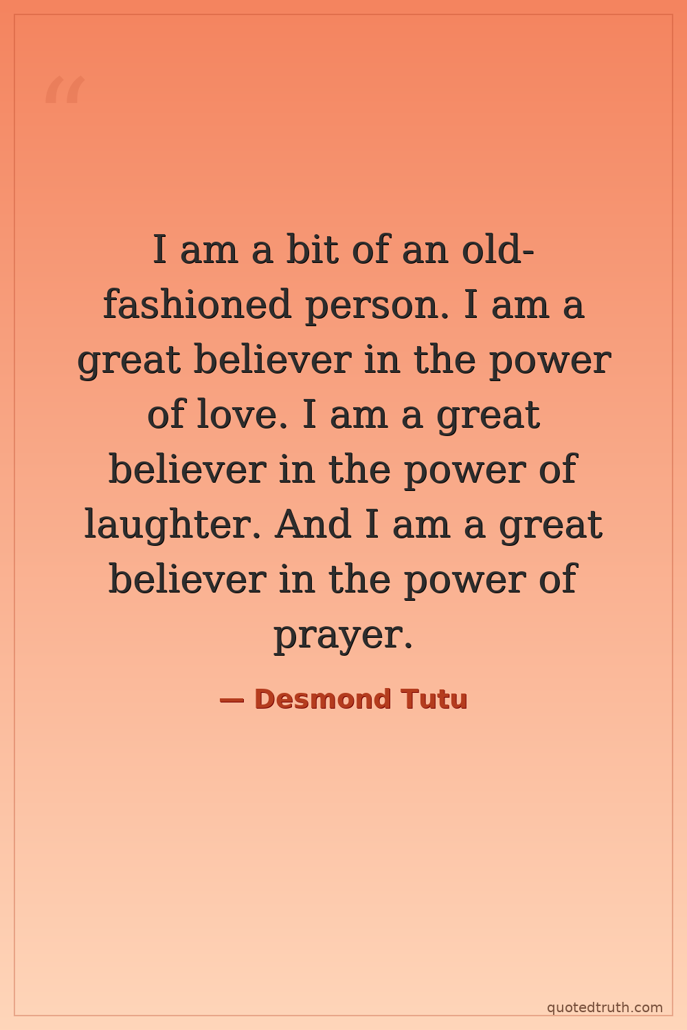 I am a bit of an old-fashioned person. I am a great believer in the power of love. I am a great believer in the power of laughter. And I am a great believer in the power of prayer.