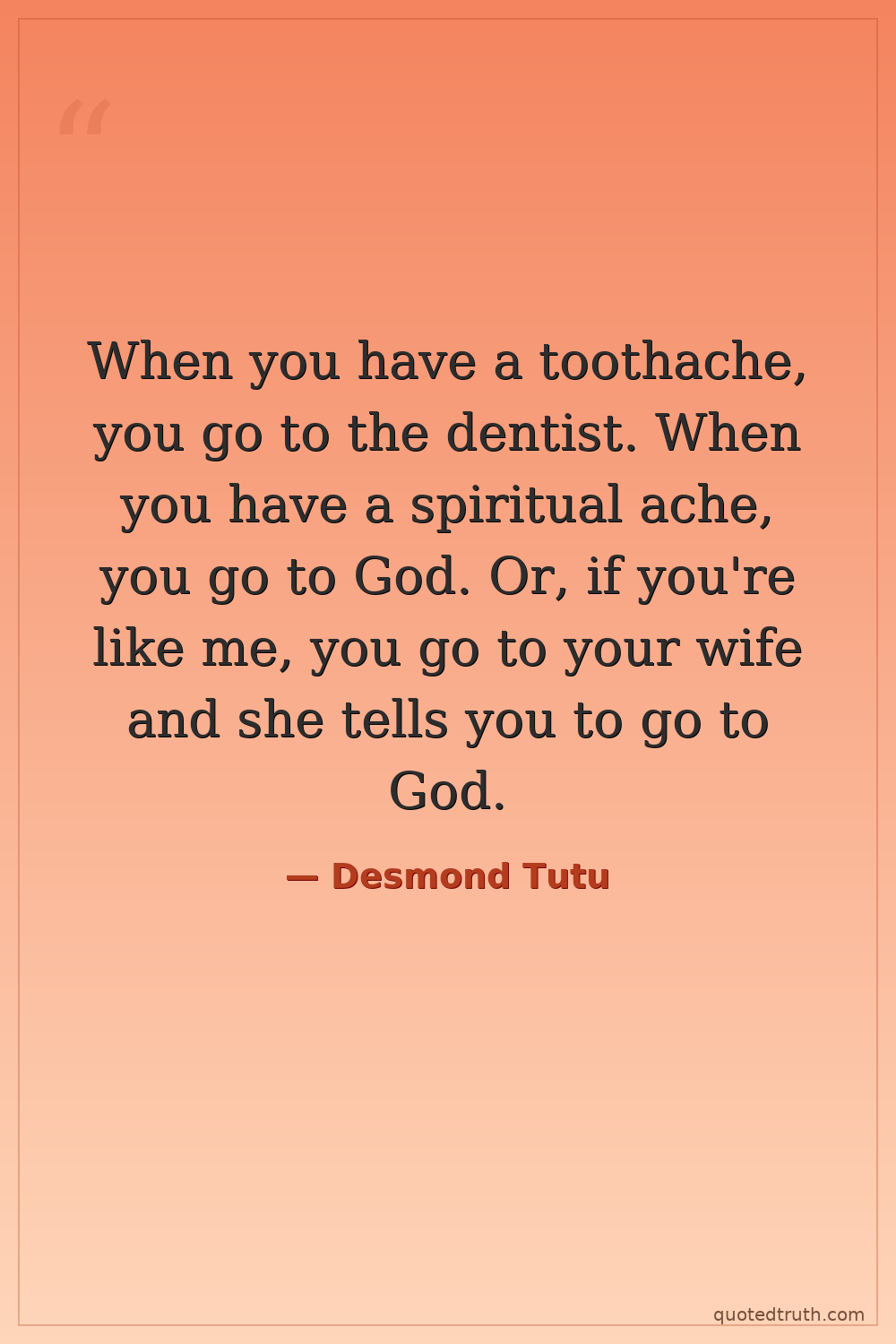 When you have a toothache, you go to the dentist. When you have a spiritual ache, you go to God. Or, if you're like me, you go to your wife and she tells you to go to God.