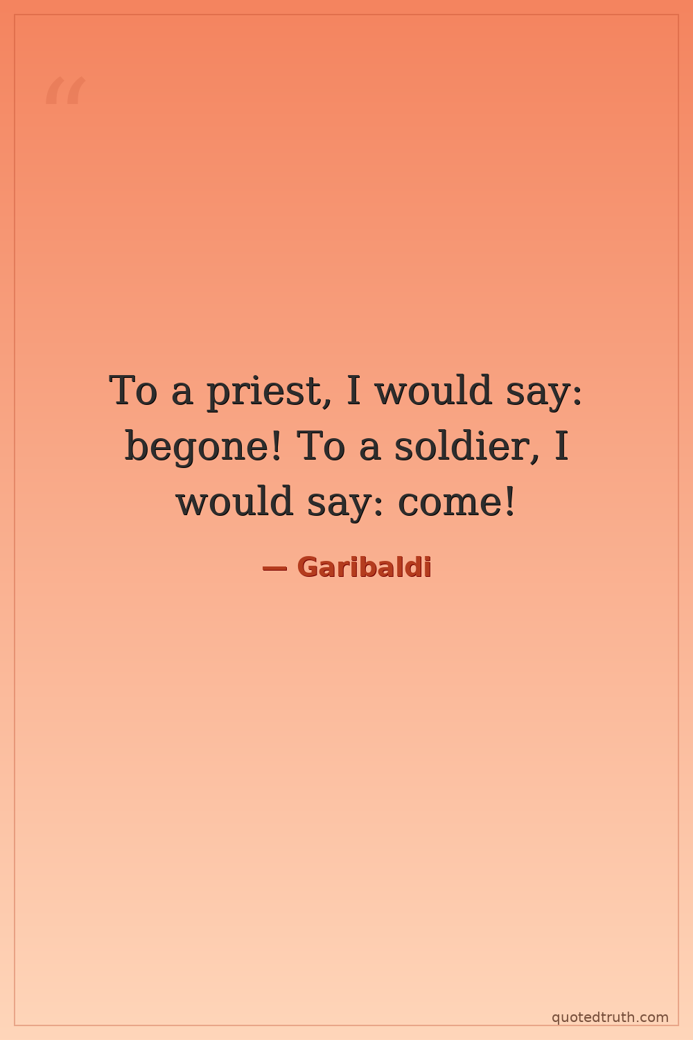 To a priest, I would say: begone! To a soldier, I would say: come!