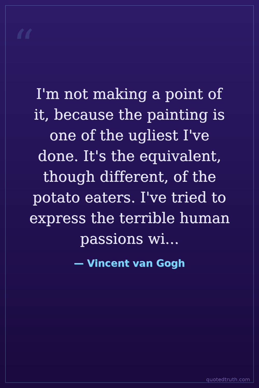 I'm not making a point of it, because the painting is one of the ugliest I've done. It's the equivalent, though different, of the potato eaters. I've tried to express the terrible human passions with the red and the green.