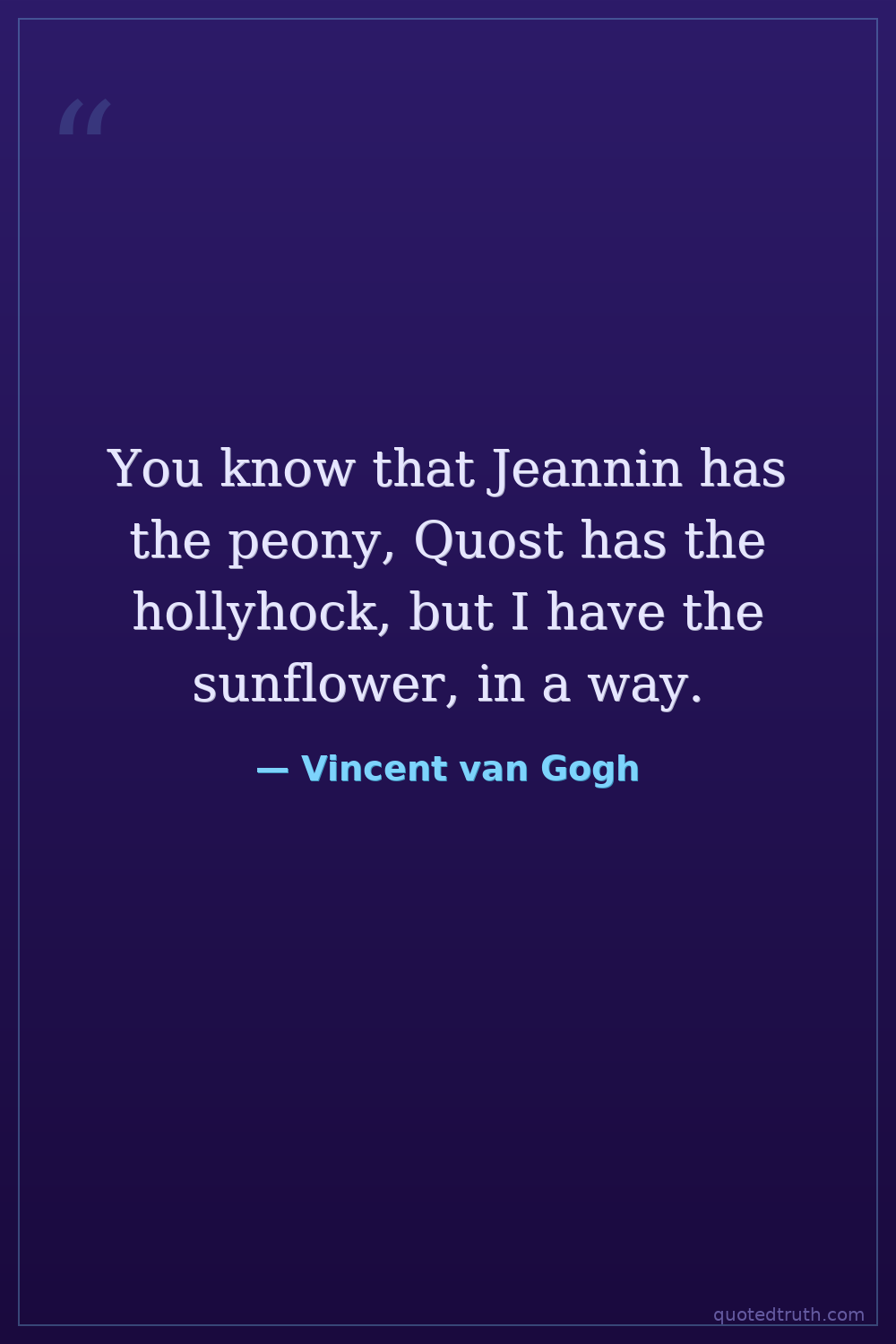You know that Jeannin has the peony, Quost has the hollyhock, but I have the sunflower, in a way.