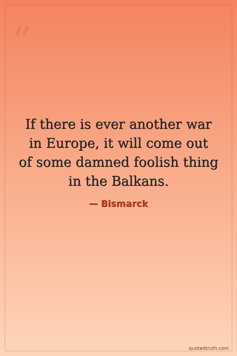 If there is ever another war in Europe, it will come out of some damned foolish thing in the Balkans.