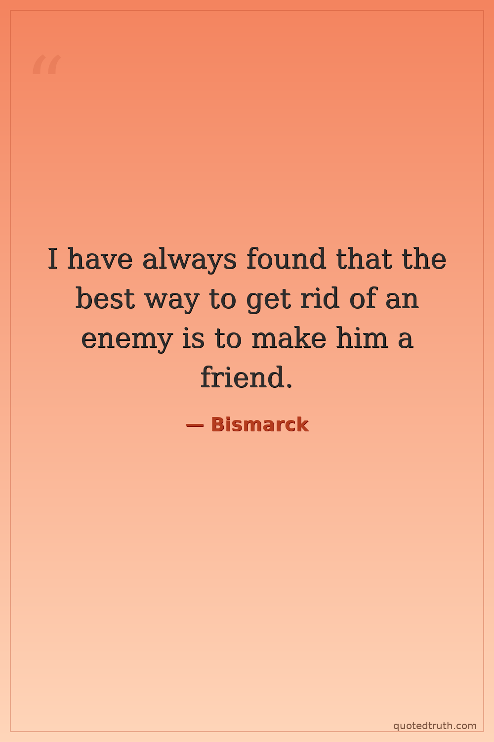 I have always found that the best way to get rid of an enemy is to make him a friend.