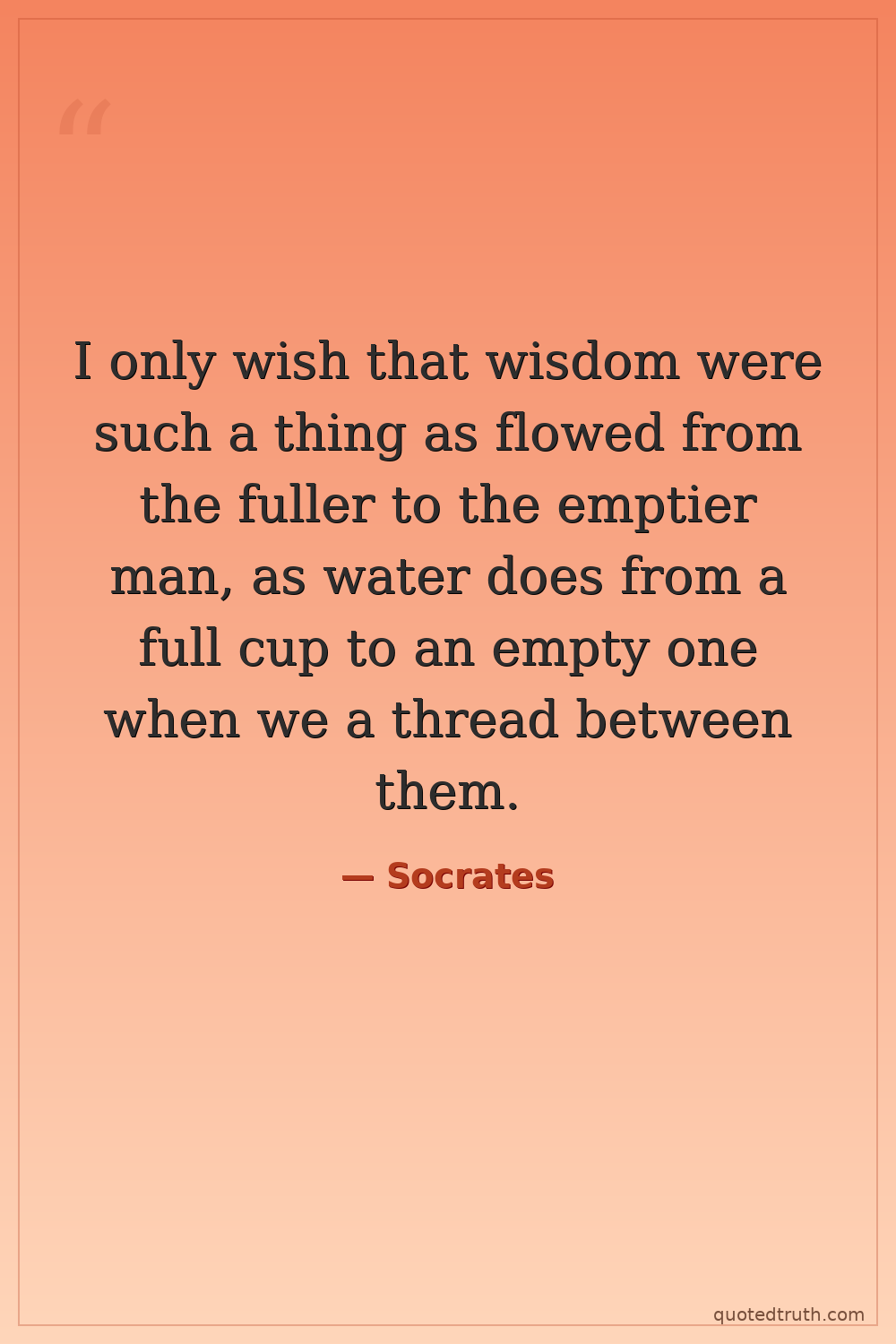 I only wish that wisdom were such a thing as flowed from the fuller to the emptier man, as water does from a full cup to an empty one when we a thread between them.