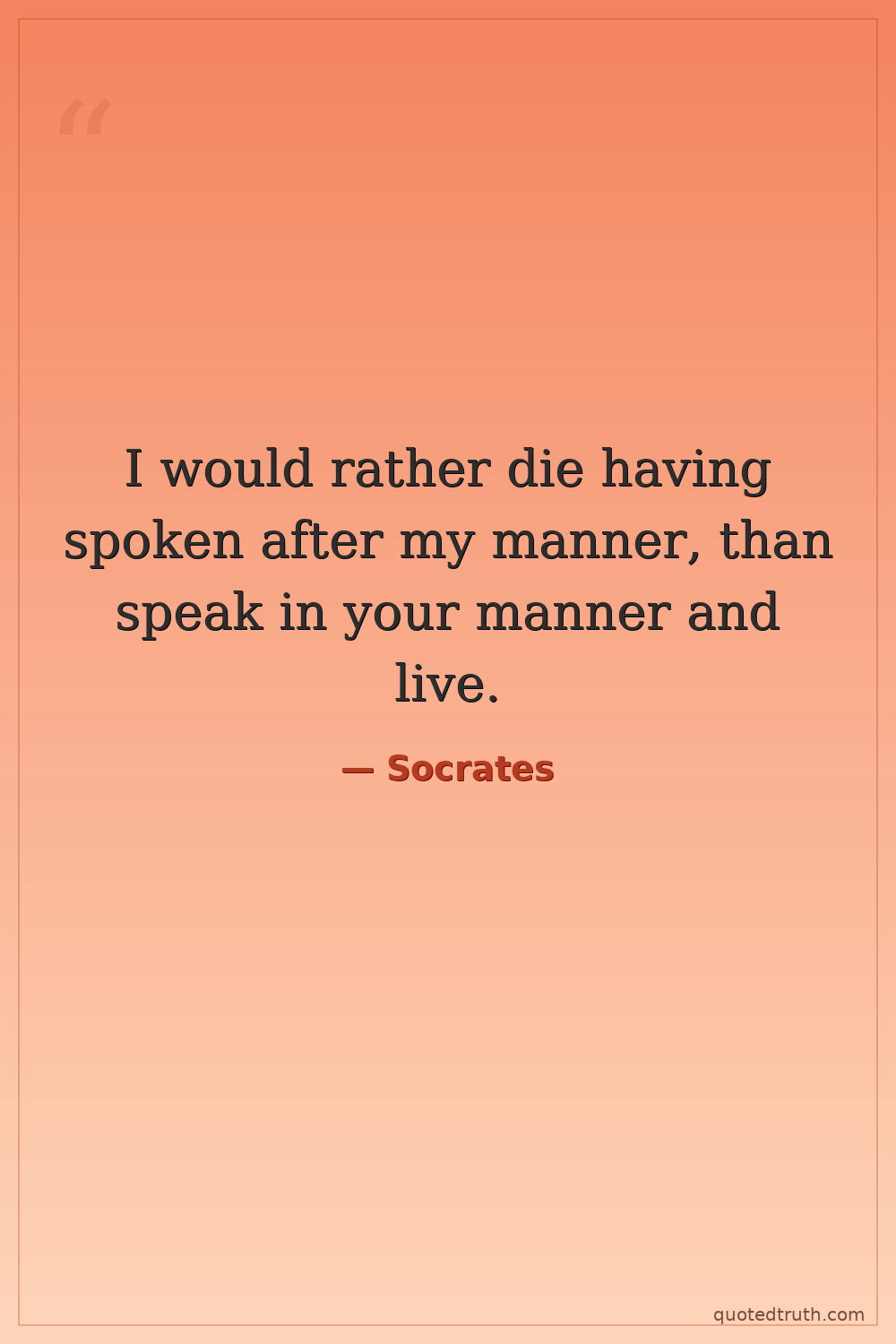 I would rather die having spoken after my manner, than speak in your manner and live.