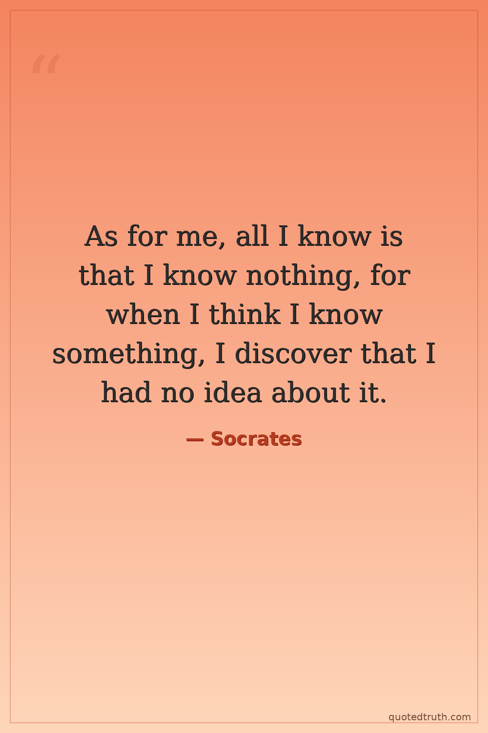 As for me, all I know is that I know nothing, for when I think I know something, I discover that I had no idea about it.