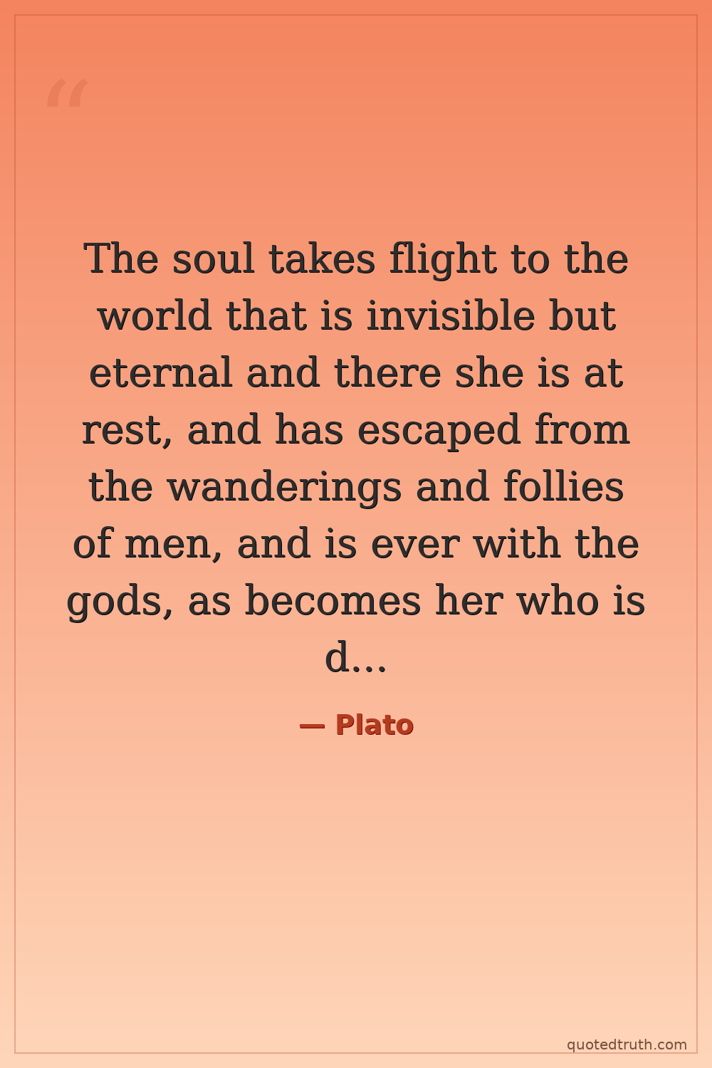 The soul takes flight to the world that is invisible but eternal and there she is at rest, and has escaped from the wanderings and follies of men, and is ever with the gods, as becomes her who is divine.