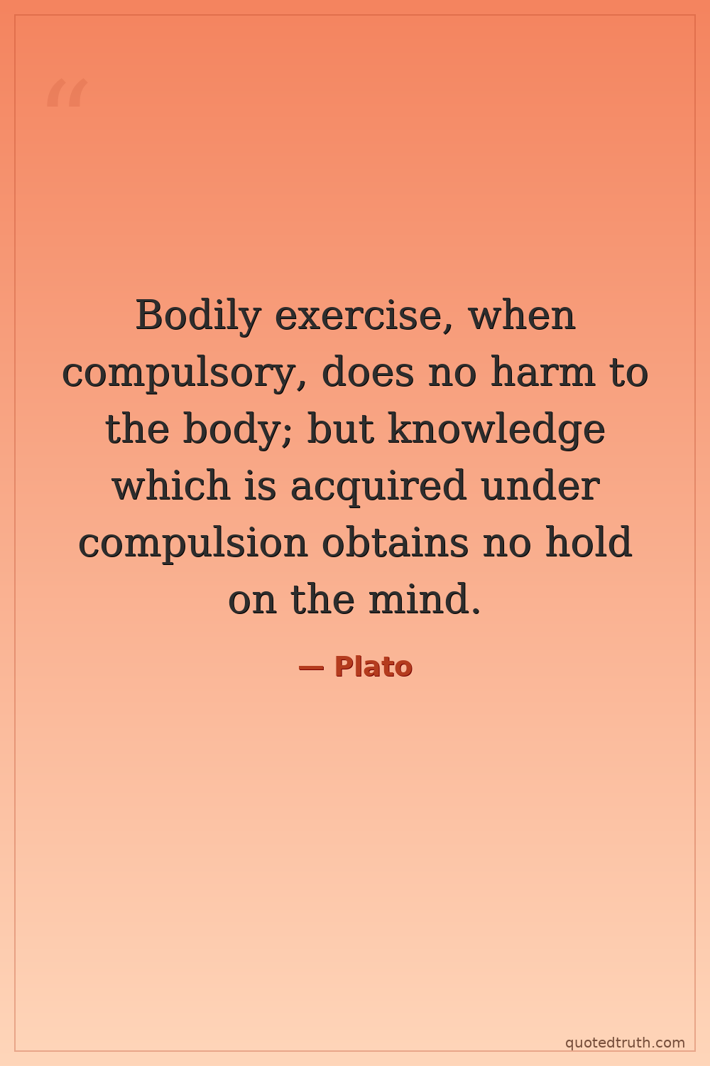Bodily exercise, when compulsory, does no harm to the body; but knowledge which is acquired under compulsion obtains no hold on the mind.